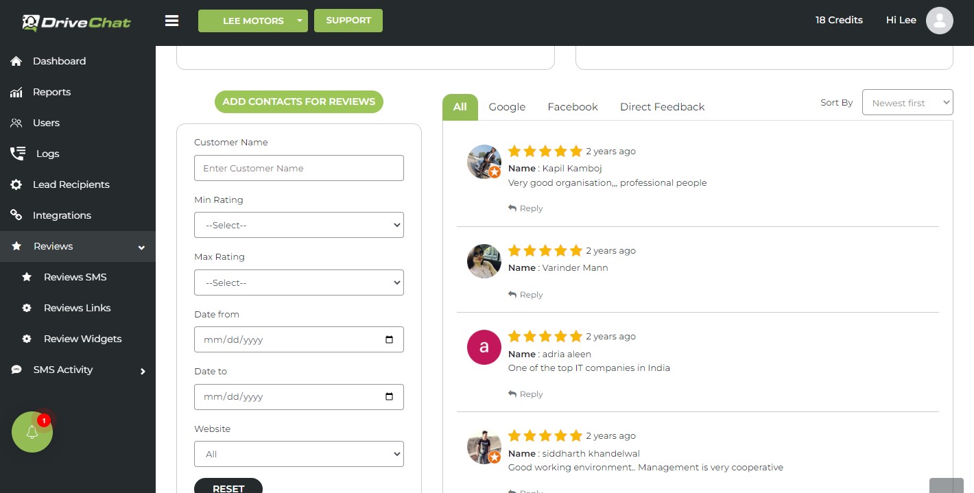 Customer reviews are an important tool for any business that wants to improve their online reputation, and displaying customer feedback helps let potential customers know that your business is great things! Your Drive Chat subscription now includes the option to send an SMS to your customers to ask them provide feedback on their experience by publishing a review on Google or Facebook. Please log in to your account to see this exciting new feature, or Contact Us to have your Account Manager arrange a demo.